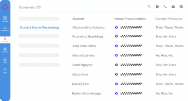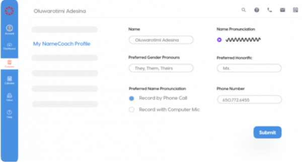 Students voice-record their names and set up their Namecoach profile once – in a new student enrollment process or within your LMS – for use across the campus.